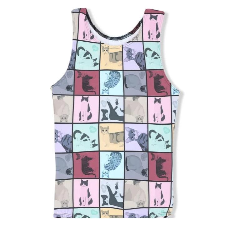 This vibrant and playful leotard features a fun pattern of colorful squares filled with cats, perfect for adding a touch of whimsy to your child's gymnastics routine. Made with high-quality materials for comfort and durability, this leotard is sure to become a favorite in your little one's wardrobe. Let your child's personality shine through with this eye-catching and unique leotard!
