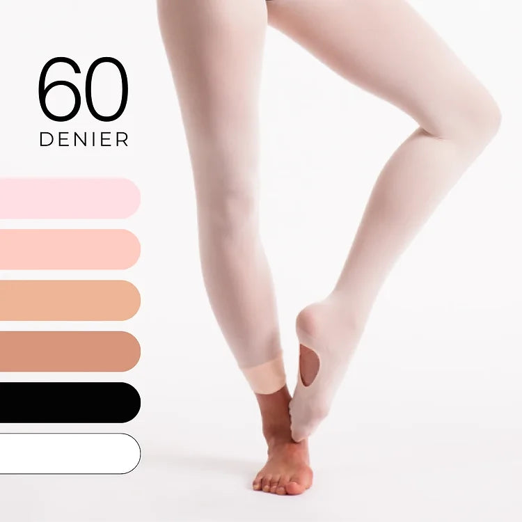 Introducing the Silky Dance Intermediate Convertible Tights, the ultimate solution for versatile dancewear. These ladies dance tights feature a unique convertible design, allowing dancers to transition effortlessly between barefoot and fully covered looks. With a denier of 60, these tights offer the perfect balance of durability and comfort.
