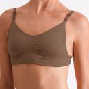 The Silky Seamless Clear Back Bra Top comes with nude/dark nude and clear adjustable straps.