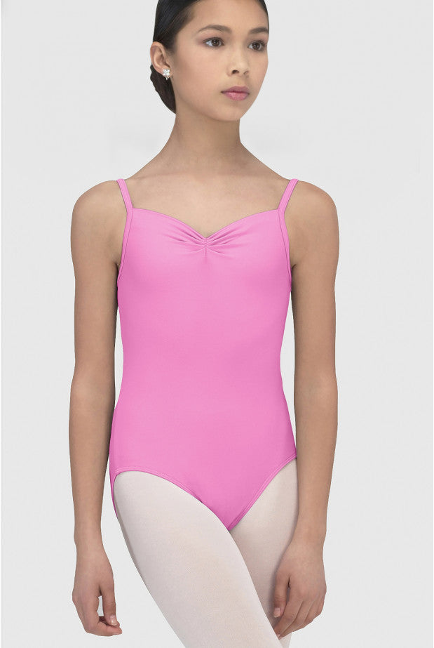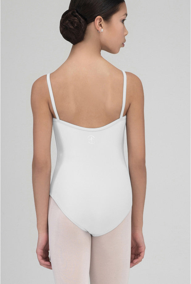 Basic, simple, and elegant camisole leotard with a mid-back profile and front pinch.