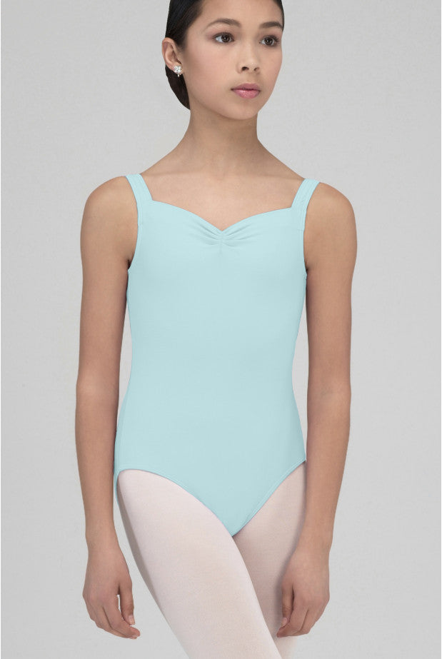 Microfiber basic tank leotard with front pinch. U-cut back.