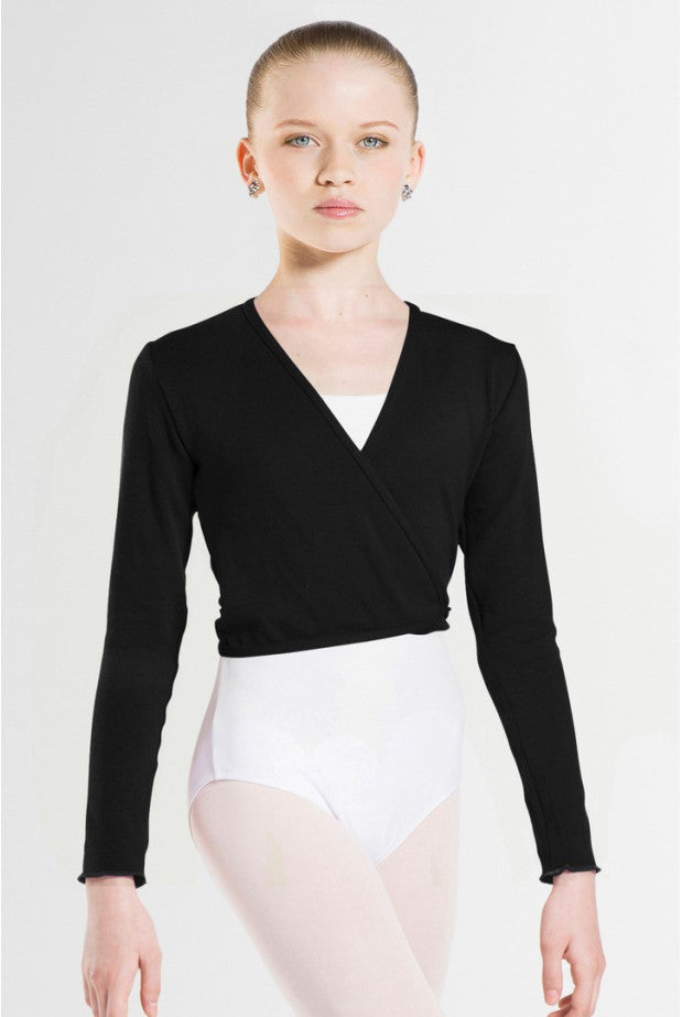 This classic knitted full-sleeved wrap-around top secures with adjustable self-ties for a snug fit. This is a must-have piece in the studio: layer the wrap-around top over your favorite leotard before you warm up. Our soft knitted fabric delivers maximum comfort and a perfect fit.