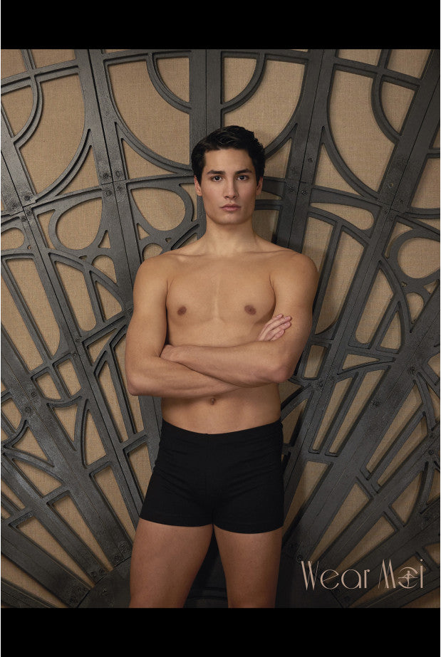 Men’s leg cut, cotton shorter length shorts that include a comfortable elastic waistband.