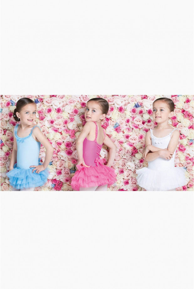 Tutu-cute, a stylish and classy take on a kid's fashion. This four-layer tutu dress offers soft ruffle, mini roses, and crisscrosses detail. Any little ballerina would love this dress.